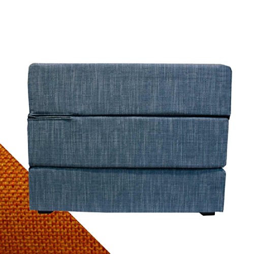 Description de l'article pourArketi-com TOUF, le lit qui se transforme en un pouf, avec une base en Jeans bleu et Revetement exterieure Orange 63x63x45 cm