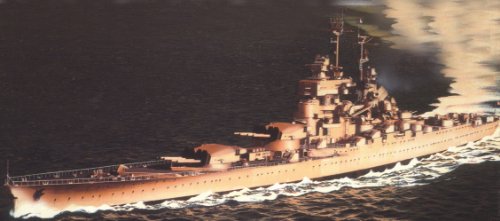 Cuirassé Jean Bart 1/400Le Jean Bart fut mis en chantier à Saint-Nazaire le 12 décembre 1936. Lors de l'attaque allemande de mai 1940 le commandant du Jean Bart prend toutes les dispositions possibles pour essayer d'arracher son navire à sa cale de construction. Il appareille non terminé dans la nuit du 19 juin et fait route vers Casablanca où il subira une attaque violente et se posera sur le fond sans trop de dommages. Renfloué, il regagne la France le 25 août 1945 où il subira d'importants travaux et ralliera ensuite l'escadre de la Méditerranée.Longueur H.T: 248 mLargeur: 35,50m